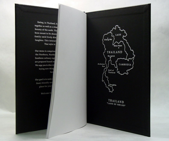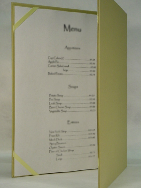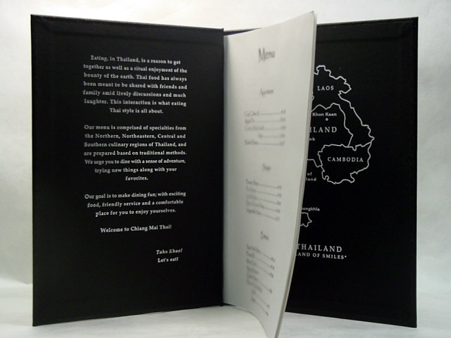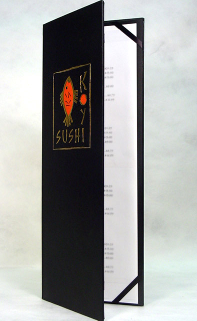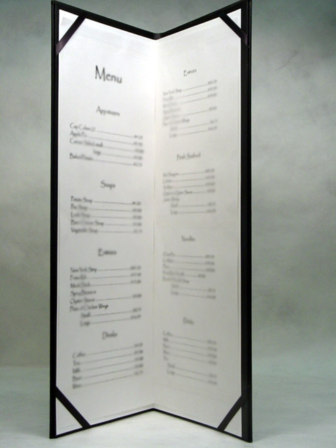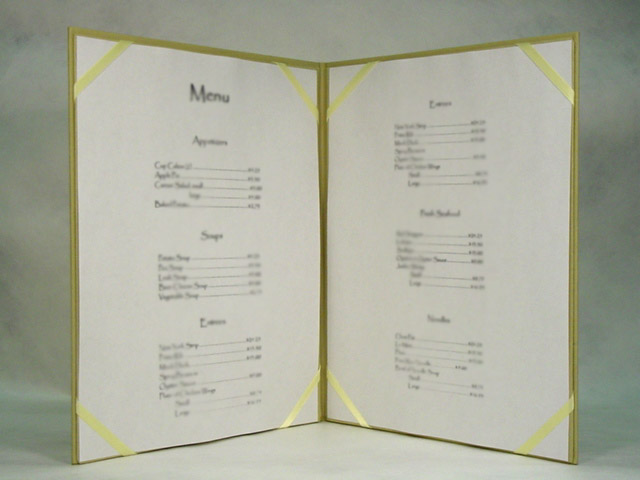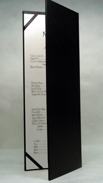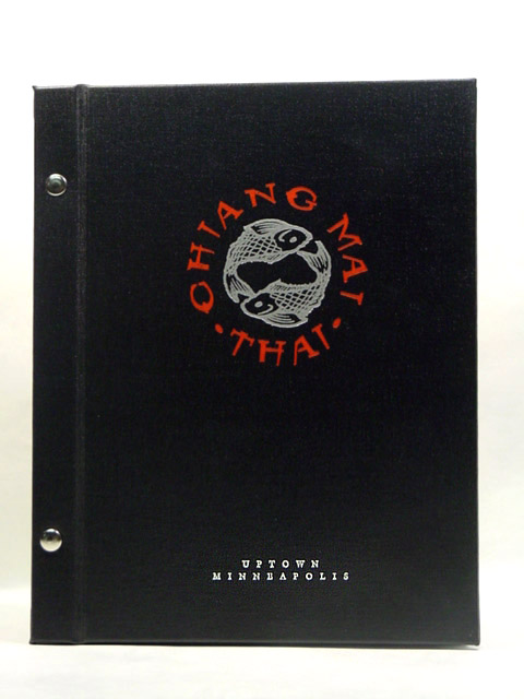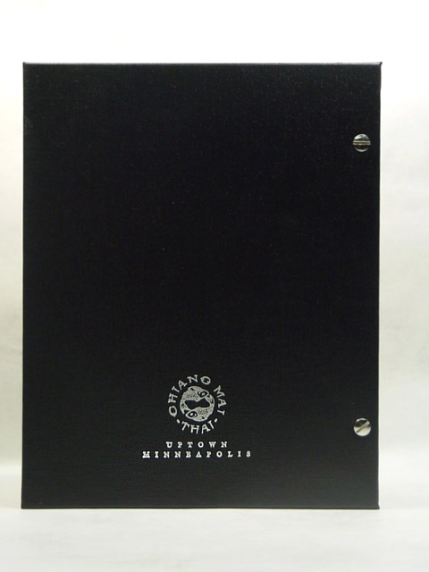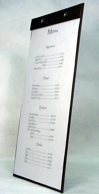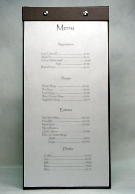 Different customer needs and designs call for different solutions. Some designs have included ribbon corners, cloth corners, or Chicago screw posts. Each system allows for the easy removal and placement of a fresh menu.